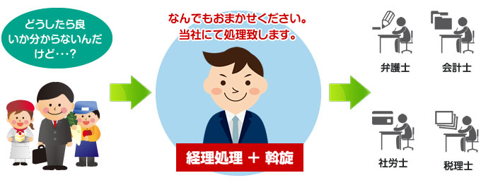 必要なときだけ経理担当者の代わりをするので、経理事務の時間コスト・教育コスト等の削減・人件費削減・経費削減が可能です。 簿記の知識をもった当社スタッフが経理処理を行います。 お客さまの現状を生かしつつ、より効率的で確実性の高い方法をご提案し運用コストを抑えます。
